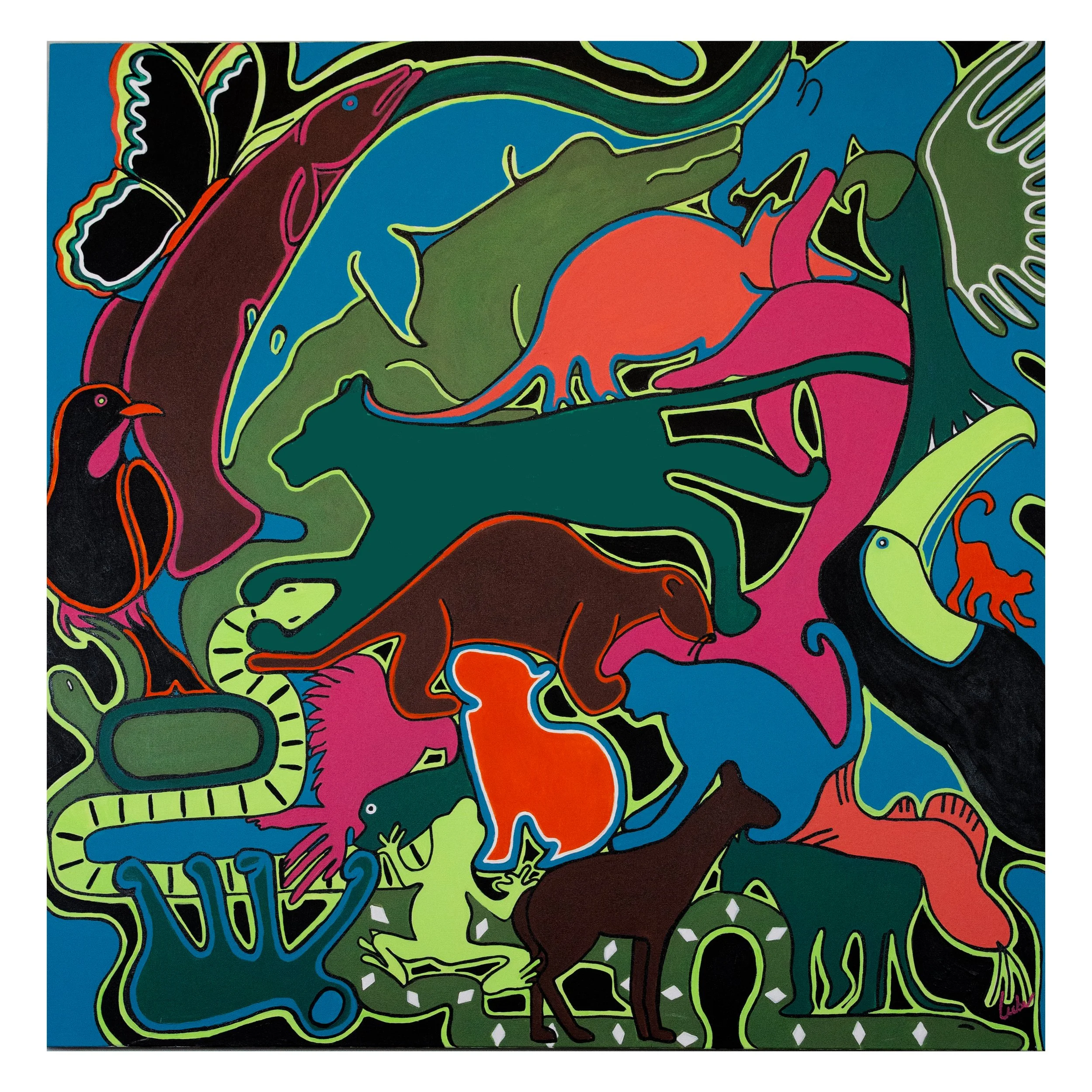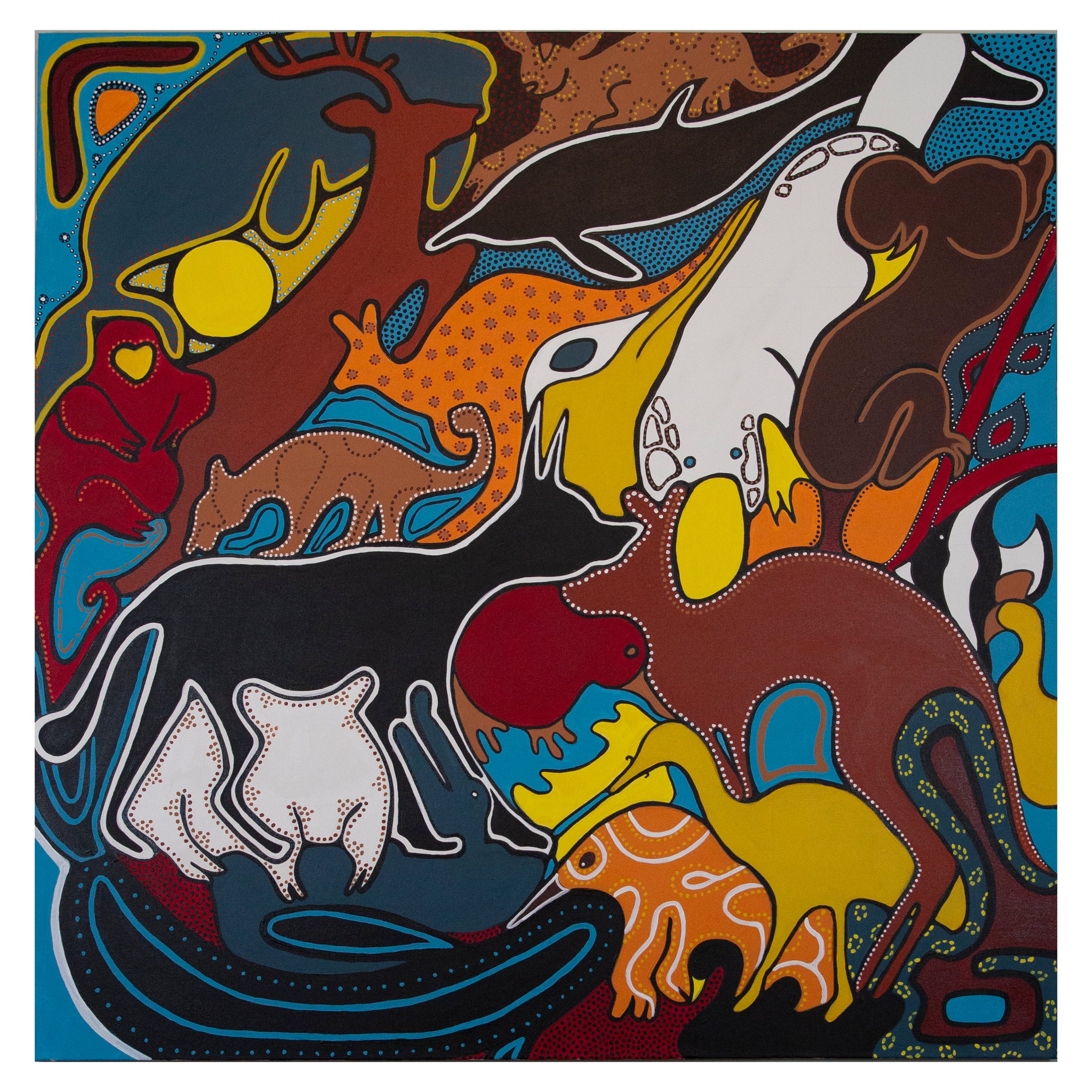 Animal Collective is an ongoing series designed to spotlight the beauty, diversity, and vulnerability of the world’s wildlife. Each panel in the project features 25 animals, grouped by specific themes-from species found in my home state of Michigan to animals once endangered and critically endangered, and those impacted by habitat loss in Africa. This work is grounded in a deep concern for the alarming decline in global biodiversity. Between 1970 and 2020, populations of mammals, birds, reptiles, amphibians, and fish have declined by over 73%. Habitat loss, largely driven by human activity, remains the greatest threat to wildlife around the world. I believe we have a responsibility to confront these realities and use our work to inspire awareness, reflection, and action. Animal Collective is not only a tribute to the extraordinary creatures we share this planet with, but also a call to protect them. Through these panels, I hope viewers pause to consider the fragile interconnection between humans and animals- and the joy, wonder, and responsibility that relationship brings.